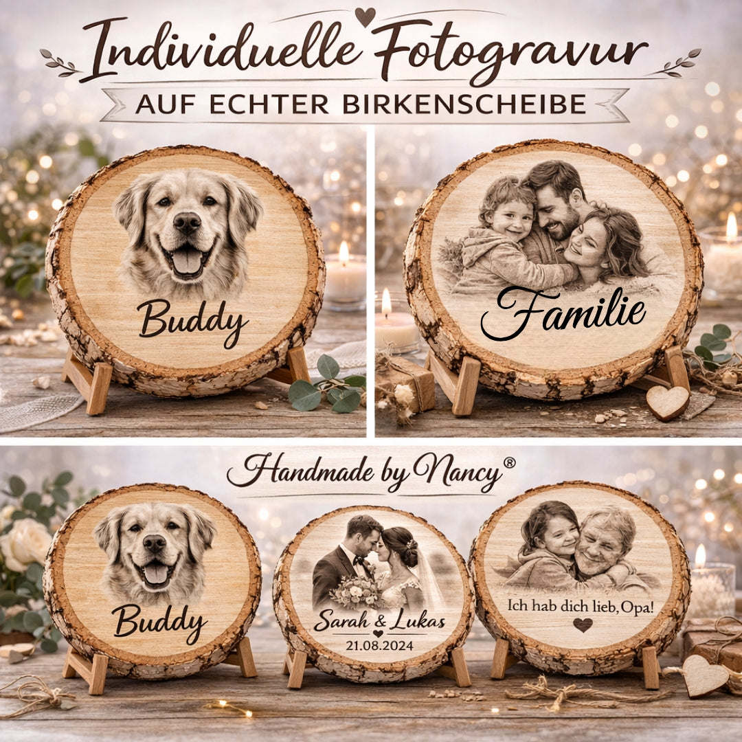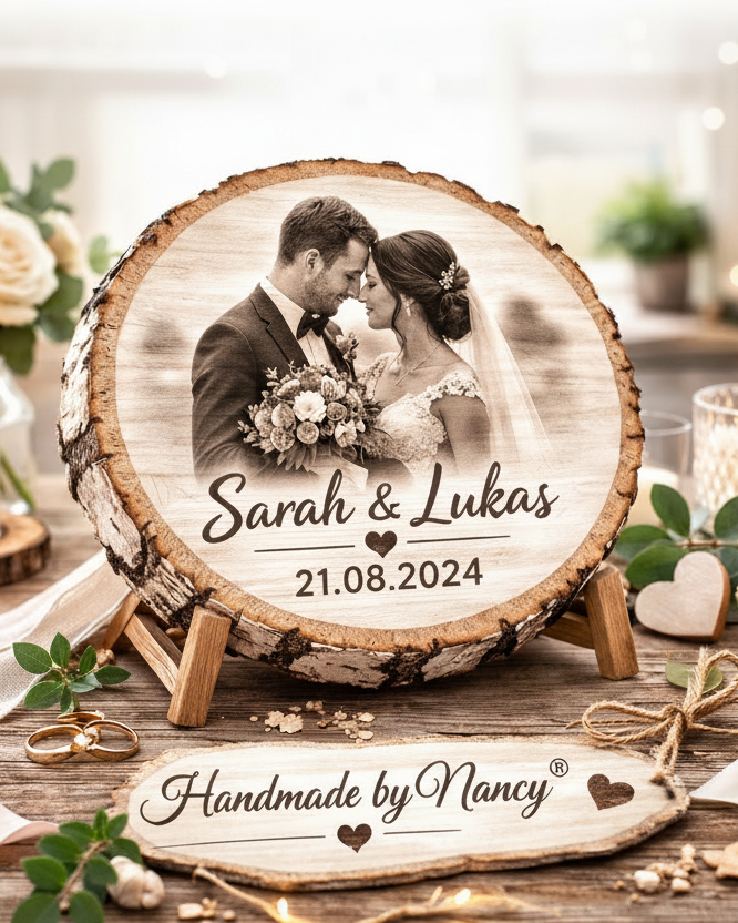 Rustikale Baumscheibe graviert mit deinem Foto
